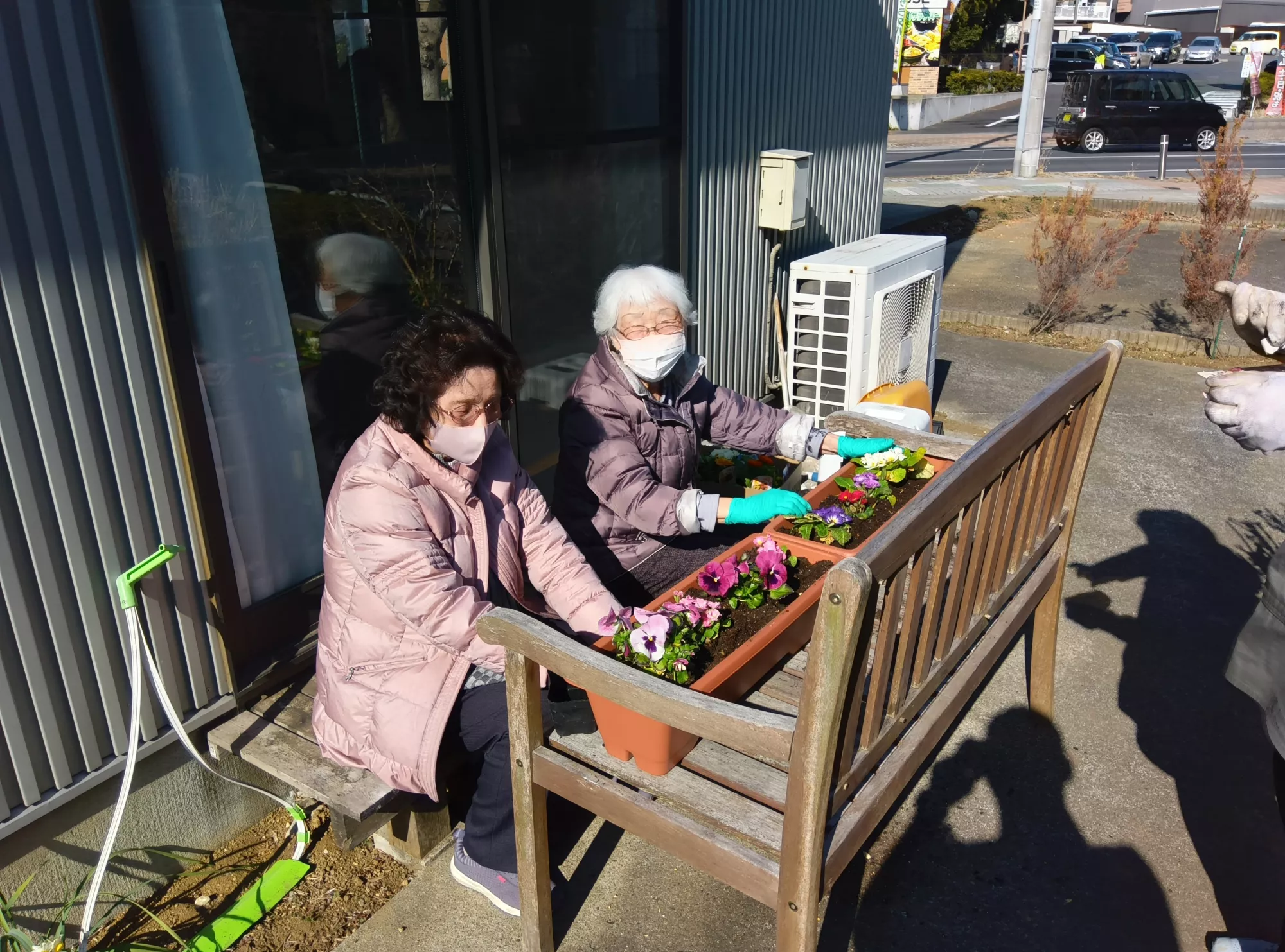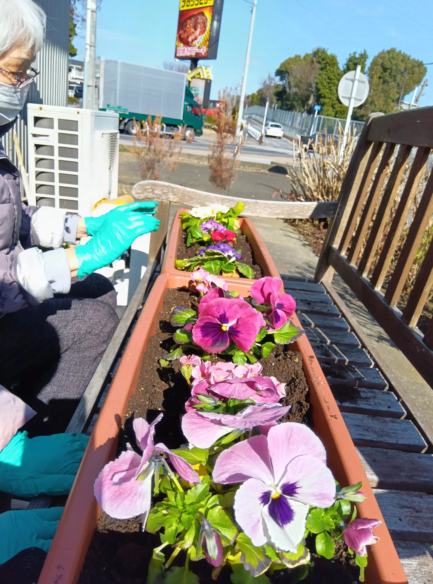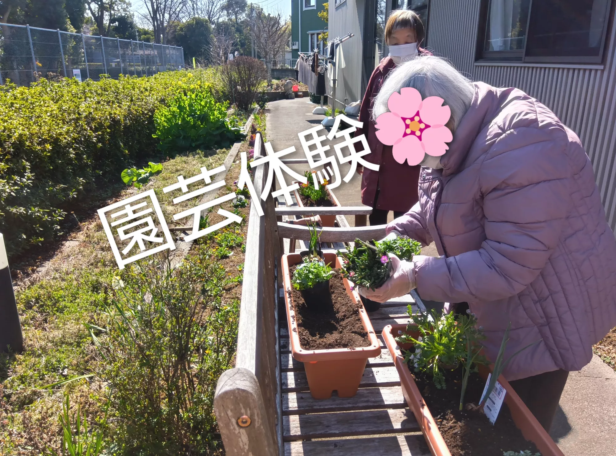 春を感じる日差しの中で、お客様と一緒に園芸体験を行いましたー🏵️